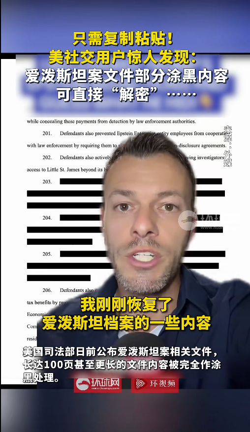 致使还有网友成功在X平台上发布关联“操作指南”,视频演示这一流程,同期嘲讽好意思国司法部,“特朗普政府的司法部把一些文献的涂黑惩办搞得恶运透彻,以至于你不错收复它们。我仅仅浅易地通过复制、粘贴文本就作念到了。”