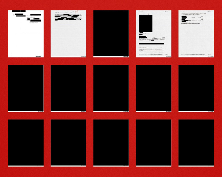 这次公布的文献中,至少有550页试验被所有涂黑,无法读取。其中一组连续三份文献共255页沿路被整页覆盖,另有一份标注为“纽约大陪审团”的119页文献不异全数涂黑。此外,还有至少180页出当今“部分可读、部分覆盖”的档案中。