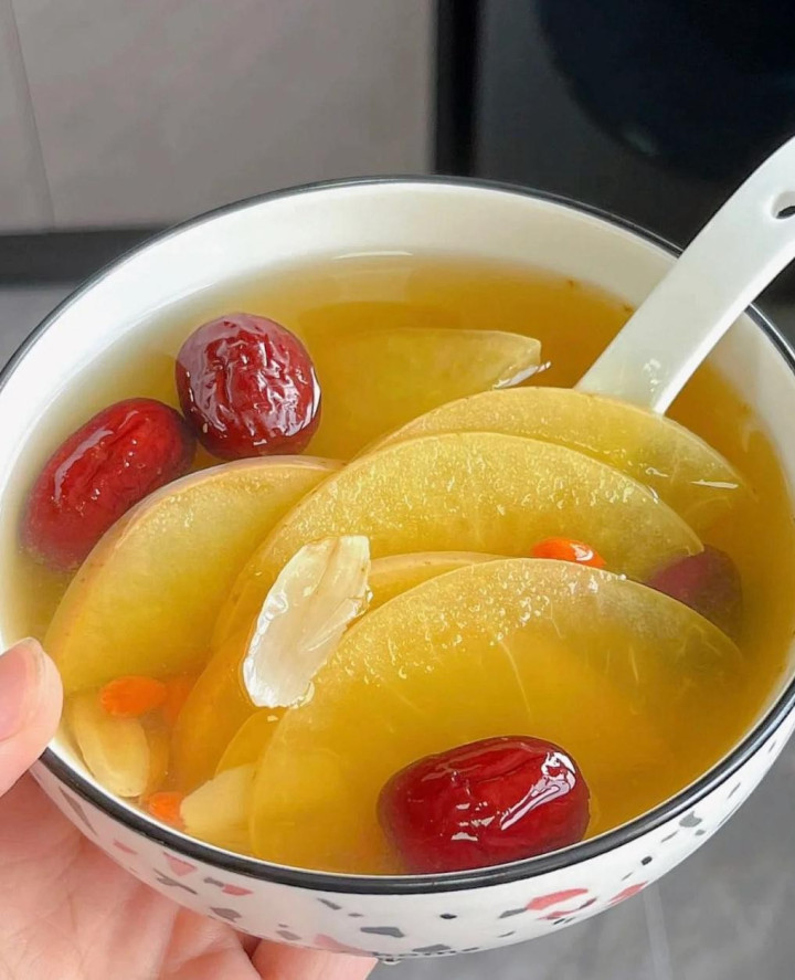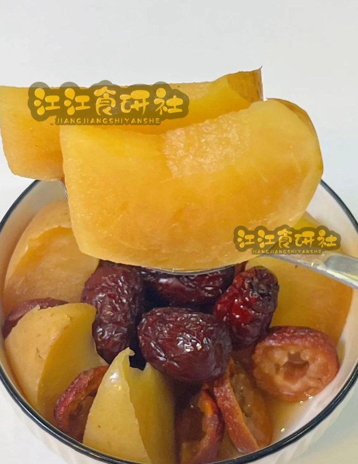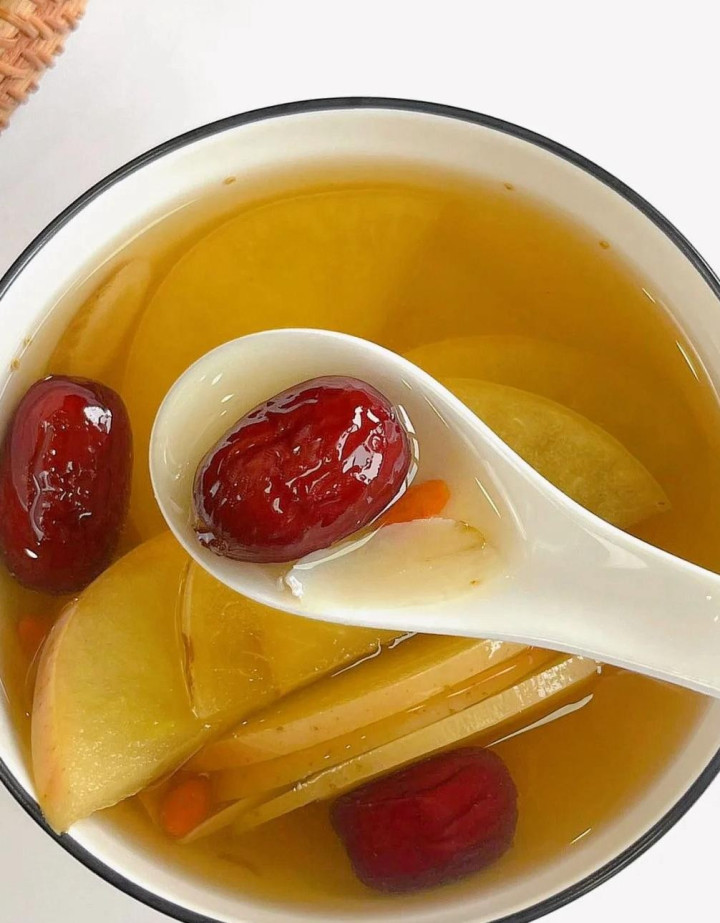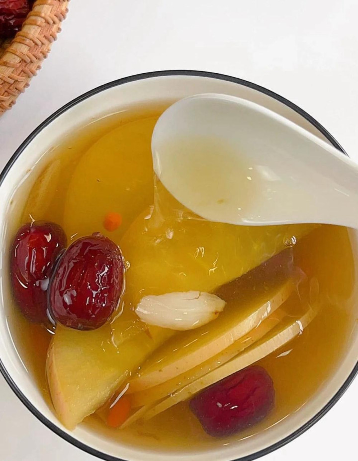 煮制经过把苹果的养分皆开释到水里了,黄芪补气、百合润燥、陈皮理气,特地勉强那些口干舌燥、浑身乏力的秋燥问题,多喝几次,燥气当然就散了。